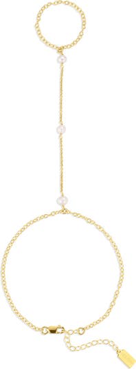 Glowing freshwater pearls dial up the glam on this hand chain that makes a statement whether worn solo or styled with a stack.