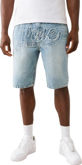 Frayed-edge logo details occupy prime real estate on shorts cut from well-faded cotton denim in a relaxed, baggy fit that hits just below the knees. Horseshoe embroidery on the back pockets lets you rep the brand to everyone who follows your lead.