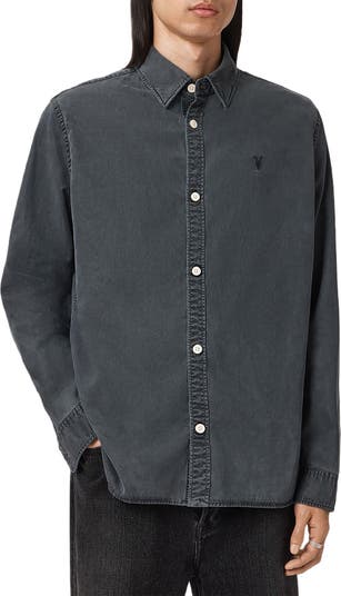 This garment-dyed overshirt is crafted from with breathable organic cotton and accented with a signature Ramskull embroidered at the chest.