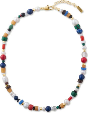 This everything-but-the-kitchen-sink style features a colorful collection of freshwater pearls, beads and stones that makes any ensemble more playful.