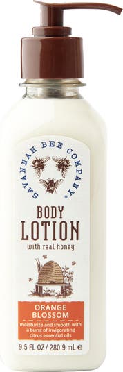 The tangy-sweet and fruity fragrance of our Orange Blossom Honey Body Lotion will leave you feeling fresh and uplifted. Ultra-hydrating honey and beeswax naturally soften your skin and create a barrier to hold in moisture. Savannah Bee Honey Body Lotion is a luxurious, long-lasting everyday lotion for silky skin! Aloe Vera and coconut oil further nourish and hydrate your skin. Gentle and perfect for daily all-over moisturizing. Contains no parabens or petroleum, and never tested on animals.
