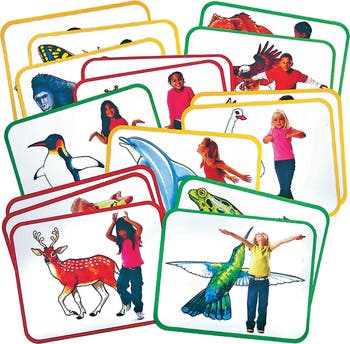 4 years & up. Stretch, strut, waddle, prance and stroll with these body poetry exercises. The back of the cards have 3 related walking patterns for children to follow. Included guide details facts about each animal, exercise routines and ideas for integrating the exercises into the curriculum. Included are 16 exercise cards with different animals printed on to impersonate. Cards measure 8" x 11".