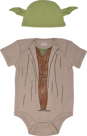 Welcome to the adventure of a lifetime in a galaxy far, far away! Wearing this Star Wars Mandalorian Short Sleeve Bodysuit & Hat, your kid is ready to journey through the Star Wars universe with favorite characters like the Mandalorian Bounty Hunter Din Djarin and “The Child” Grogu. The Force will always be strong with your little one in this short sleeve bodysuit and cute and stylish cap featuring Grogu, who looks like an adorable Baby Yoda.