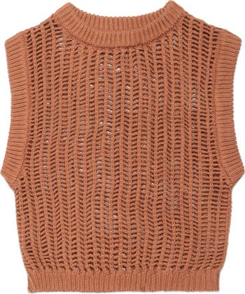 Add an airy layer to your look with this sweater-vest knit from soft cotton-blend yarns in an airy, open stitch for a sheer look that hints at what's underneath.