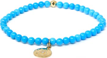 A 14-karat gold charm and bead elevate this turquoise beaded stretch bracelet that brings organic color to your stack.