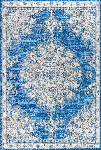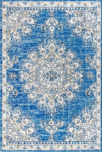 - Combining tones of pink, gold and blue, this rug is a versatile addition to any color scheme