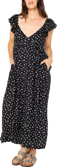 Build out your black-and-white collection with an easy, breezy maxi covered in tiny blooms and perfected with a pair of pockets.