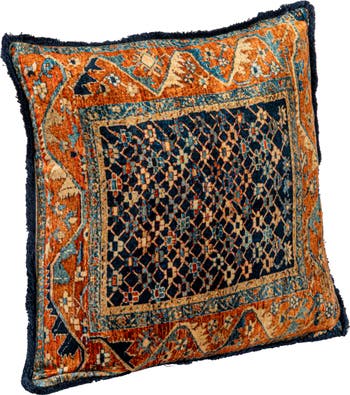 Bohemian Rhapsody Velvet Pillow with Vintage Carpet Print, Multicolor