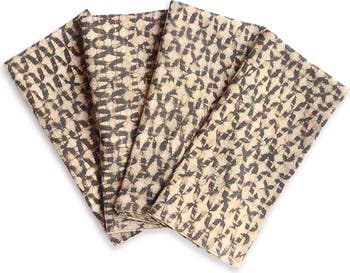 These napkins are printed by hand using a carved wooden block on a hand woven organic cotton fabric and then hand dyed in natural dyes. Pair them with our organic cotton tablecloths and add the right amount of natural elegance to your table setting. • hand-block printed using a wooden carved block • hand dyed in Natural Dyes • color - brown • fabric - organic cotton • size - 19" x 19" • set of 4 *Please note that slight color variations may occur, as each piece absorbs natural dyes differently—a beautiful part of the handmade process. --------------------------------------- ABOUT BLOCK PRINTING Block Printing is an ancient printing technique especially with the use of vegetable dyes. After the wooden block is carved with the pattern, the fabric is then prepared with multiple washes to make the fiber ready to take the dye. With the process of multiple printings and washing before the final product is placed in a dye bath of flowers and barks, the fabric goes through the hands of the block printer and dyer with utmost care. That same care is passed onto the consumer who wishes to take part in this process of honoring the craft and the earth that gives us so much.