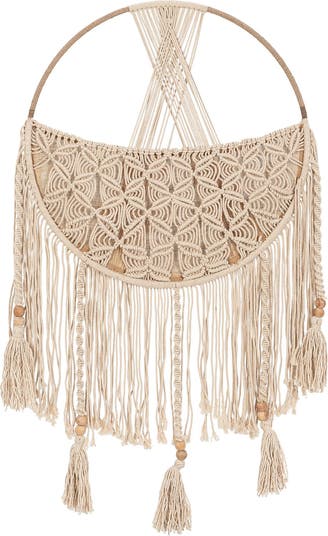 Bring a boho vibe to baby's room with this cotton-macramé hanging basket that's perfect for holding their favorite toys.