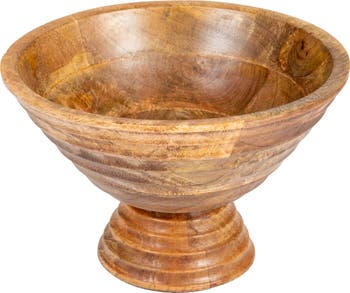 Boho Wood Pedestal Serving Bowl, Light Brown Finish