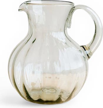 Handblown from 100% recycled glass by artisans in Mexico, this fluted pitcher combines everyday function with artisanal charm. Its round form and elegant fluted texture make it equally at home on a dining table or kitchen counter. Food safe and dishwasher safe. Due to its handmade nature, slight variations in size, shape, and minor surface imperfections such as air bubbles or tool marks are natural characteristics of the craft.