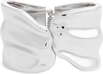 Hinged so it's easy to put on and take off, this bold, chunky bracelet is all about fluid, organic curves that please the eye.