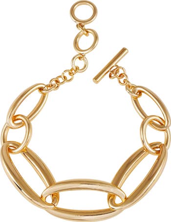 Make a statement with this effortlessly chic toggle bracelet from Vince Camuto. Featuring bold, polished oval links, this bracelet is a modern classic that commands attention. The secure toggle bar closure doubles as a stylish accent, adding a touch of sophistication. This piece is perfect for adding a touch of bold elegance to any ensemble, whether worn alone or as part of a layered look.
