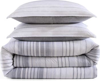A medley of mixed stripes brings natty sophistication to your bedding ensemble when you build it around this soft, breathable cotton-percale set.