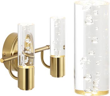 Add some sparkle to your modern bath vanity with our Art Deco-inspired contemporary wall light. The brass gold finish accentuates the fixture's clean lines, while clear bubble acrylic adds unexpected texture to the minimalist design. This versatile light is perfect for mid-century modern or contemporary spaces, adding a touch of sparkle to your bath vanity, kitchen, hallway or entry.