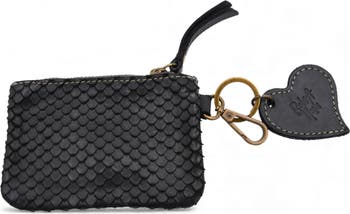 Crafted from buttery soft Italian leather, this compact card case blends artistry with function. The intricate laser-cut design adds rich texture and dimension, while the removable embossed heart charm—signature Bolsa Nova detail—offers a personal touch. Perfect for stashing cash, cards, or keys, it's finished with antique brass hardware and a secure zip-top closure.
