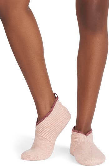 A marled knit adds wintry vibes to these cozy slipper-socks featuring gripper soles for surefooted traction on wood or tile floors.