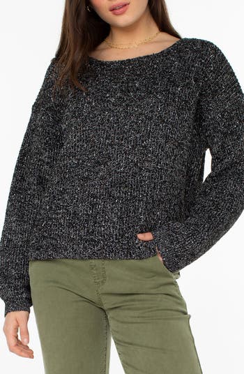 A cutout on the back lends sultry detail to this sumptuous sweater that's ready for getting cozy by the fire.