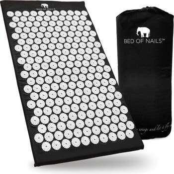 BED OF NAILS helps people live healthy lives in a stressful world. Our premium quality acupressure mat products are safe for you and for the planet. We are the trusted brand that pioneered the world’s modern back acupuncture mat movement with Swedish ingenuity. Inspired by ancient guru sadhu board technology, we went global with our acupuncture massage mat in 2009. Celebrities relax on their personal BED OF NAILS spike yoga mat. We've been awarded the Glamour Best Relaxation Tech Award, the Wellness Power List, and have been featured on TV and in magazines like Elle. You receive: 1 x BED OF NAILS Acupressure Mat, Black. 8,820 nails. Nail plates 1" diameter. 100% recyclable, non-toxic, glue-free plastic nails melted onto luxurious 100% organic cotton fabric filled with PU foam. Size: 29 x 16 x 1” (74 x 42 x 2 cm). 1 x Carry Bag. FDA registered. Certified RoHS and REACH. Lie on the pressure point mat to connect with your bliss as often as you wish. The nails on our accupuncture mats are skin-friendly and do not bend no matter how much you weigh. The strong nails restore body freedom in 10-20 minutes or more daily. Our extra nails mean less pain and more treatment. Enjoy deep prana breathing on this massage mat bare-skinned or wear a thin t-shirt. The whole family will love it, even the cat. Blissful pain-blocking endorphins are stimulated, energy flows, and blood circulation improves. Nail pressure points on our massage mat pad stimulate natural self-healing energy and release blockages. May help sciatica pain and fibromyalgia relief. Tensions ease as relaxation is induced on this spike lotus mat. Ideal sleep acupressure and may help with insomnia relief. If you are seeking alternative medicine back pain relief products, our acupressure mat for neck and back make caring and relaxing stress relief gifts for women and men for self-care and mindfulness. BED OF NAILS is an experience that unfolds in daily acu-pleasures.