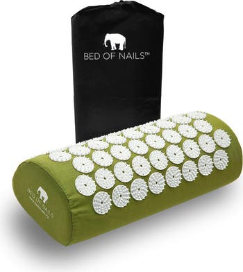 BED OF NAILS helps people live healthy lives in a stressful world. Our premium Bed of Nails acupressure mat and pillow products are safe for you and for the planet. We are the trusted brand that pioneered the world’s modern acupressure mat movement with Swedish ingenuity. Inspired by ancient guru sadhu board technology, we went global with our acupuncture massage mat and pillow in 2009. Celebrities relax on their personal BED OF NAILS massage pillow mat pad. We’ve been awarded the Glamour Best Relaxation Tech Award, the Wellness Power List, and have been featured on TV and in magazines like Elle. You receive: 1 x BED OF NAILS Acupressure Pillow, Green. 2,142 nails. Nail plates 1" diameter. 100% recyclable, non-toxic, glue-free plastic nails melted onto luxurious 100% organic cotton fabric filled with PU foam. Size: 15 x 6 x 4” (38 x 15 x 10 cm). 1 x Carry Bag. FDA registered. Certified RoHS and REACH. The nails of our acupressure neck pain relief pillow are skin-friendly and do not bend, regardless of your weight. Use it with our pressure point prana mat to connect with your bliss, on lower back pain and all your curves. Strong nails restore body freedom and ease stress in 10-20 minutes or more a day. Our extra nails mean less pain and more joy. Enjoy this spike mat bare-skinned or wear a thin t-shirt. The whole family will love it, even the cat. Blissful pain-blocking endorphins promote energy flow and blood circulation. The nails on our accupressure yoga mat trigger self-healing energy and release blockages. Tensions ease on this pressure neck mat pillow. If you seek alternative medicine back pain relief products this neck pain relief pillow can be used with an acupressure mat for neck, feet, headaches, and back pain. These stress relief relaxation gifts support self-care and mindfulness. Let your BED OF NAILS experience unfold in daily acu-pleasure.
