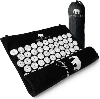 BED OF NAILS helps people live healthy lives in a stressful world. Our premium quality acupressure mat products are safe for you and for the planet. We are the trusted brand that pioneered the world’s modern back acupuncture mat movement with Swedish ingenuity. Inspired by ancient guru sadhu board technology, we went global with our acupuncture massage mat in 2009. Celebrities relax on their personal BED OF NAILS spike yoga mat. We've been awarded the Glamour Best Relaxation Tech Award, the Wellness Power List, and have been featured on TV and in magazines like Elle. You receive: 1 x BED OF NAILS Acupressure Travel Mat, Black. 8,820 nails. Nail plates 1" diameter. 100% recyclable, non-toxic, glue-free plastic nails melted onto 100% organic cotton fabric, no filler. Size: 28.5 x 16.5” (74 x 41 cm). 1 x Carry Bag. FDA registered. Certified RoHS and REACH. Drape the pressure point mat over a bed or chair for treatment. Connect with your bliss as often as you wish. The nails on our accupuncture mats are skin-friendly and do not bend regardless of your weight. Use as a reflexology acupressure foot mat, just step on our accupressure mat barefoot to stimulate body organs. The strong nails restore body freedom in 10-20 minutes or more daily. Our extra nails mean less pain and more treatment. Enjoy this prana massage mat bare-skinned or wear a thin t-shirt. The whole family will love it, even the cat. Blissful pain-blocking endorphins stimulate a self-healing energy flow and blood circulation. Nails on our massage mat pad trigger the release of blockages. May help sciatica pain and fibromyalgia relief. Tensions ease as relaxation is induced on this spike lotus mat. Ideal for sleep acupressure, may help with insomnia relief. Acupressure relaxation gifts support self-care. An acupressure mat for neck and back are great meditation accessories and caring stress relief gifts. The BED OF NAILS experience unfolds in daily acu-pleasures.