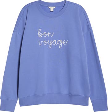 Chart a course for comfort in this cotton-rich fleece sweatshirt decorated with delightfully tactile script embroidery.