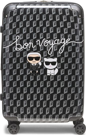 Say Bon Voyage to boring traditional luggage with this fun fashionable print from Karl Lagerfeld. With 8 smooth gliding wheels and wrapped in fashion have the envy of every traveler with 3 different sizes for all your travel needs.