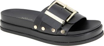 Streamlined with subtle edge, this buckle slide sandal is finished with side stud detailing and a cushioned footbed for comfort that doesn't sacrifice attitude.
