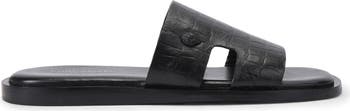 Croc-embossed leather and geometric cutouts bring striking dimension to a luxe slide sandal topped with a crystal-encrusted eagle head for a signature flourish.