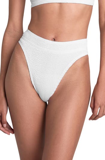 Flaunt it if you got it in these high-waist bottoms cut with a cheeky back and high-cut legs from stretchy and resilient ribbed fabric.