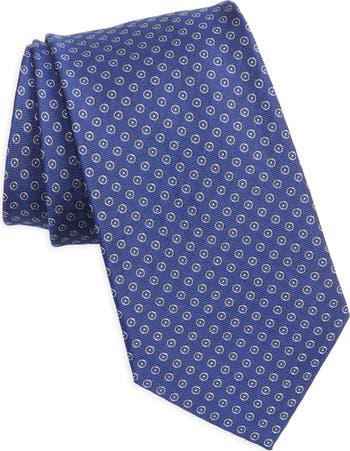 Simple medallions neatly punctuate a tie crafted from polished Italian silk and styled to elevate any formal or semiformal look.