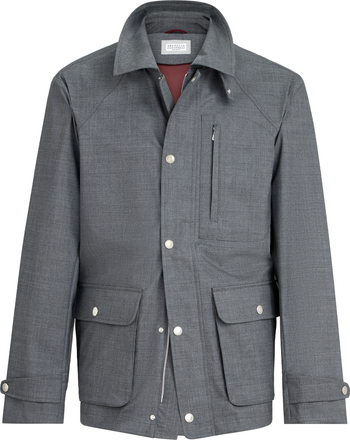 The distinctive texture of the virgin wool fresco fabric showcases an uneven color and an irregular weave, adding character and depth to the material. The addition of a thin bonded layer enhances protection from the elements without compromising breathability.