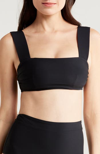Get back to the classics when you step out and lounge by the water in this solid bikini top with a square neck and wide straps. Uniquely engineered to sculpt and shape, Sculpteur® matte fabric is sutainably made in Italy with exceptional chlorine resistance, fade resistance and UPF 50+ protection.