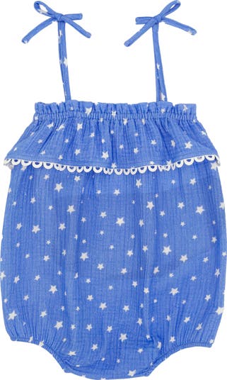 Your sweet babe will be picture-perfect on the warmest days in a flouncy bubble romper cut from cool cotton gauze.