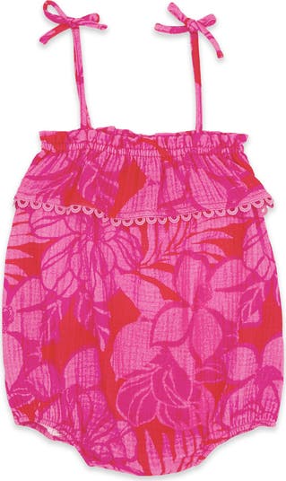 Your sweet babe will be picture-perfect on the warmest days in a brightly colored romper cut from cool cotton gauze.