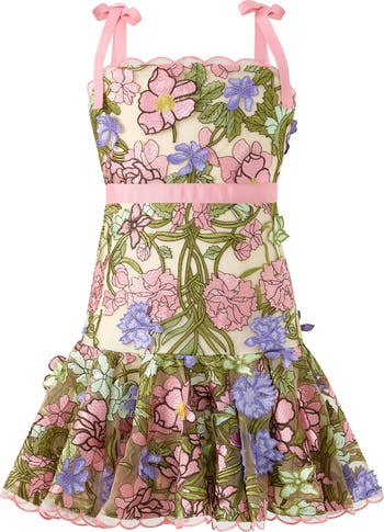 The Bonnie Embroidered Mini Dress is a magical statement style bursting with colour and texture. Featuring vibrant floral embroidery, playful frill detailing, and a silhouette made for twirling, this dress is perfect for birthdays, celebrations, and unforgettable moments.