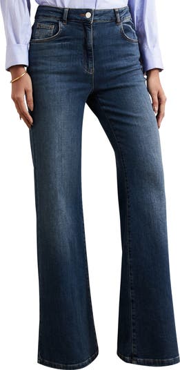 These mid-rise jeans are a modern take on classic denim, featuring a chic flared silhouette and five-pocket design. Light whiskering, worn-in folds and sandblasted finishing bring a weathered look.