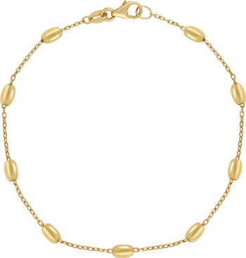 Polished bead stations gleam from the slender silhouette of this graceful chain bracelet crafted in Italy from radiant 14-karat gold.