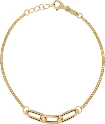 Bring perfect highlight to your wrist with this handcrafted 14-karat gold bracelet of airy oval links and delicate curb chain.