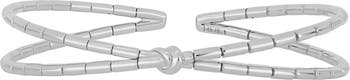 Part of our online trunk show, this style is available for a limited time From July 12 through August 3. Two segmented bands meet in the middle of this crossover bangle designed in an open silhouette and completed with a charming knotted center.