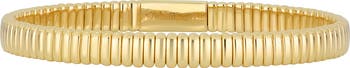 Part of our online trunk show, this style is available for a limited time From July 12 through August 3. Regimented fluting catches the eye by catching the light on this gleaming bangle handcrafted from 14-karat gold.