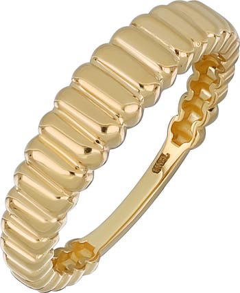 Part of our online trunk show, this style is available for a limited time From July 12 through August 3. Sculptural fluting gives a geometric glint to this tapered band ring handcrafted in the warm glow of 14-karat gold.