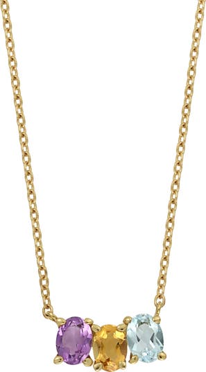 A trio of faceted stones brighten the center of this handcrafted pendant necklace.