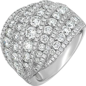 Part of our online trunk show, this style is available for a limited time From July 12 through August 3. Rows and rows of mixed-scale round diamonds swerve and swirl as they add unrivaled opulence to this handcrafted, 18-karat gold dome ring.