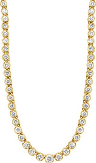 Rival the stars with this handcrafted 18-karat-gold necklace prong set with faceted diamonds.