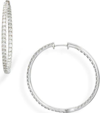 Dazzling round-cut diamonds line the outer and inner edges of these spectacular and forever-classic hoops handcrafted in 18-karat white gold.
