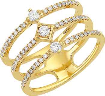 Three connected rows of round diamonds beam light out from this handcrafted statement ring forged from 18-karat gold.