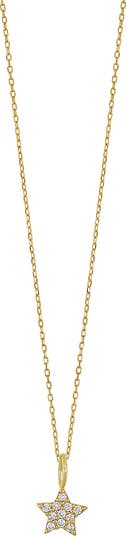 Pave diamonds add a subtle elegance to this mini star pendant that suspends on an 18K yellow gold necklace.