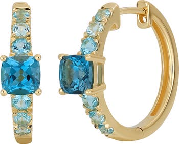 Part of our online trunk show, this style is available for a limited time From July 12 through August 3. Faceted jewels bring captivating color and sparkle to these elegant hoop earrings handcrafted from polished 14-karat gold.